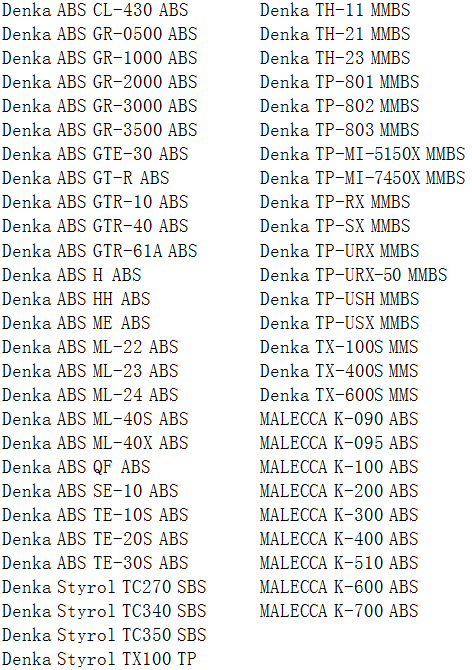 >> 日本電氣化DENKA和MALECCA系列ABS塑膠原料