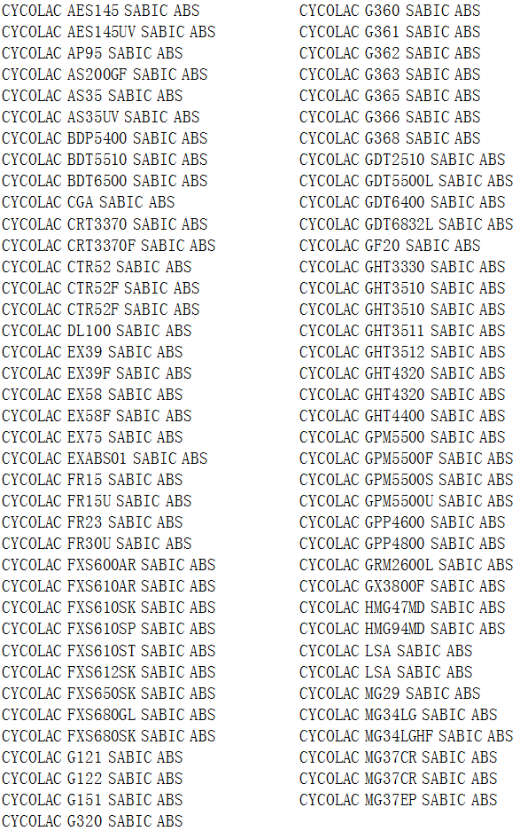 >> SABIC沙比克(原美國GE)CYCOLAC系列ABS塑膠原料