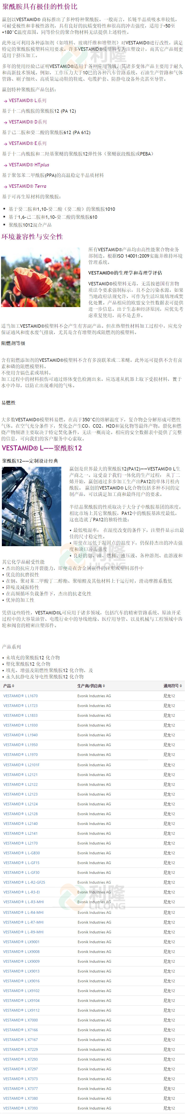 >> 德國德固賽VESTAMID品牌尼龍PA12塑膠原料