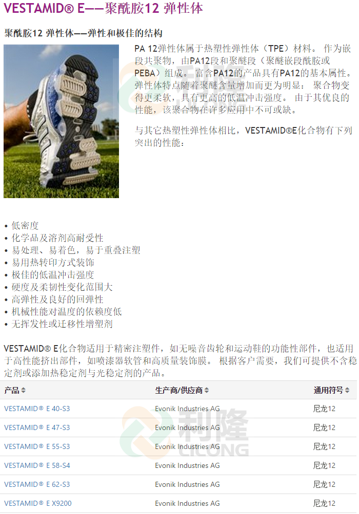 [塑料簡介:]利隆塑料專業經營德國PA12塑膠原料,尼龍12系列品牌塑膠原料,想要了解德固賽PA12塑料價格和德固賽PA12原料價格,PA12是什么材料的客戶,歡迎來電來函咨詢
