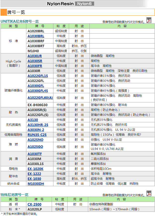 >> 日本尤尼卡UNITIKA系列尼龍PA66塑膠原料