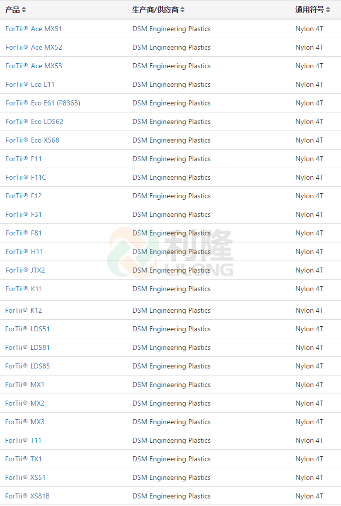 [塑料簡介:]利隆塑料專業(yè)經營PA4T塑膠原料,尼龍4T系列荷蘭DSM品牌塑膠原料,想要了解帝斯曼PA4T塑料價格和PA4T原料價格,PA4T是什么材料的客戶,歡迎來電來函咨詢