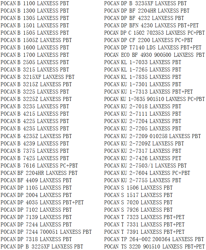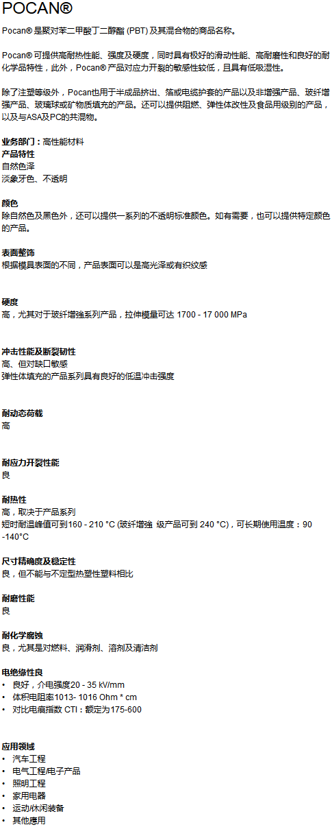 >> 德國朗盛POCAN系列PBT工程塑料