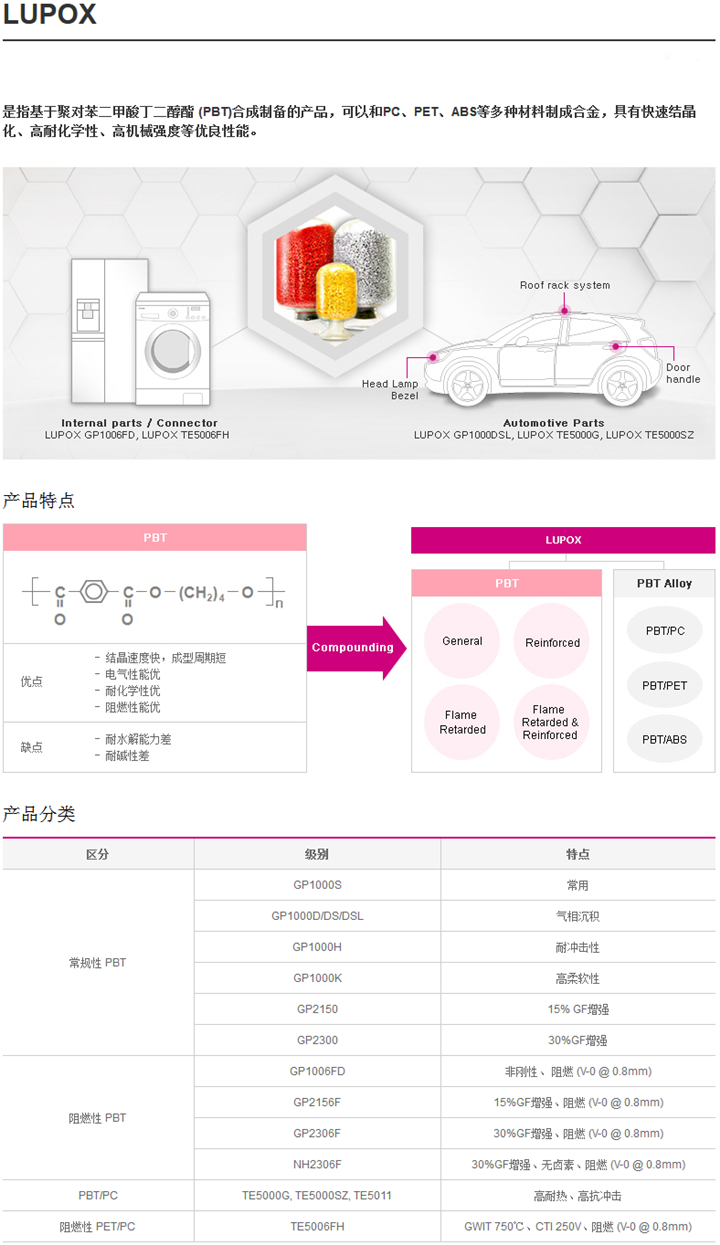 >> 韓國LG產LUPOX品牌系列PBT塑膠原料