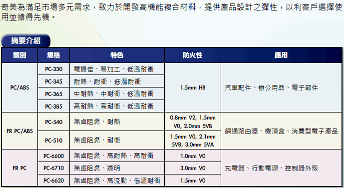 >> 臺灣奇美WONDERLOY系列PC/ABS工程塑料