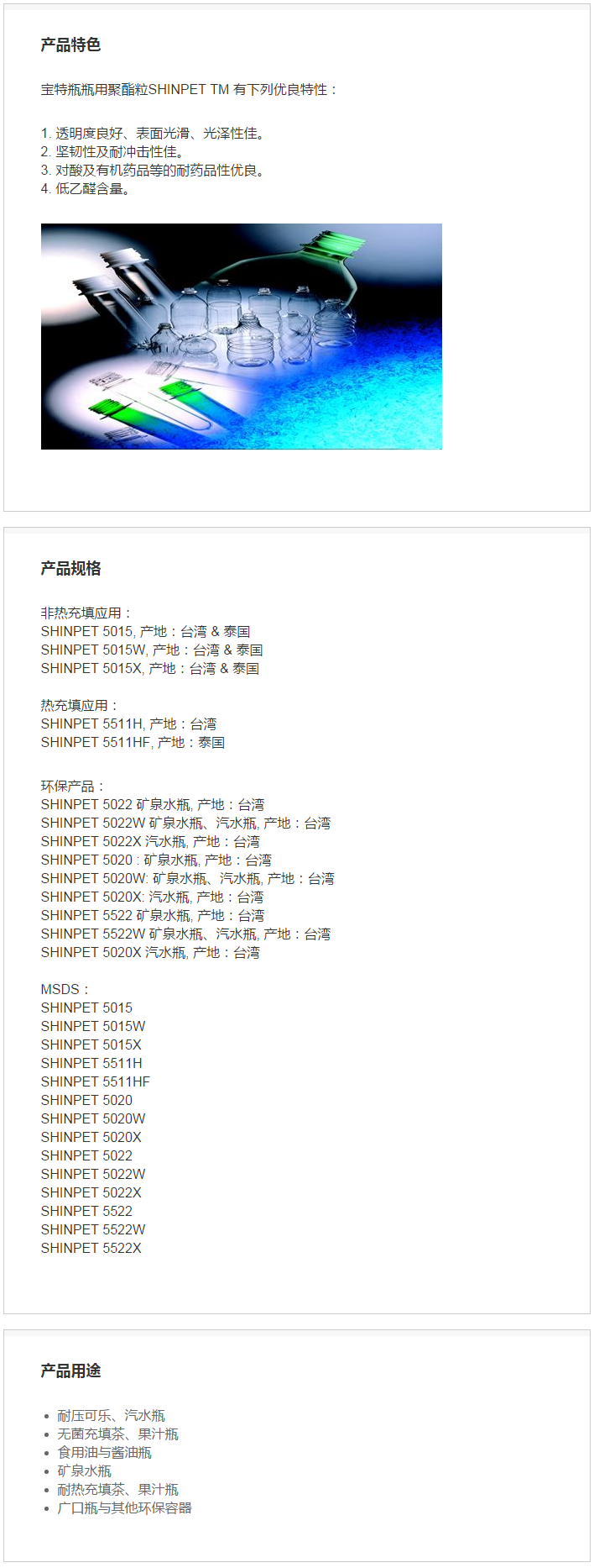 臺灣新光SHINITE品牌系列PET塑膠原料