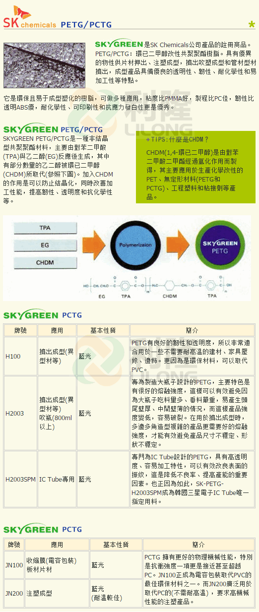 韓國SKYGREEN不含BPA食品級PETG塑膠原料