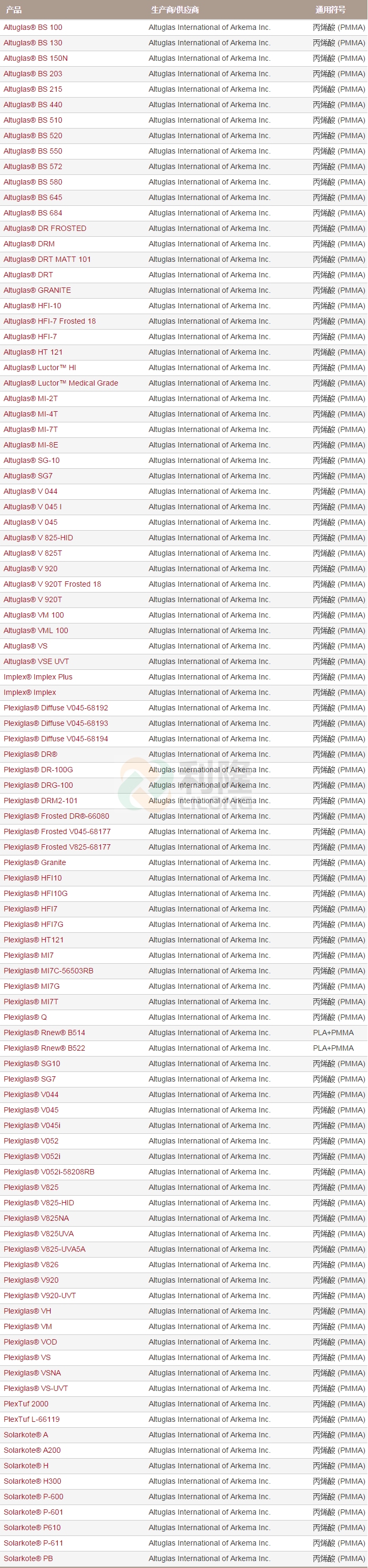 >> 法國阿科瑪Altuglas系列品牌PMMA塑膠原料