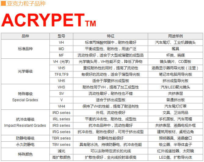 Acrypet VR S40 Mitsubishi Rayon America Inc. Acrylic (PMMA)