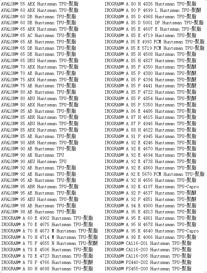 IROGRAN是亨斯邁熱塑性聚氨酯(TPU)系列產(chǎn)品的注冊(cè)商標(biāo)。IROGRAN系列TPU材料性能卓越,即使在極端環(huán)境條件下也能保持優(yōu)異的性能,因此在業(yè)內(nèi)樹(shù)立了良好的口碑。 | |