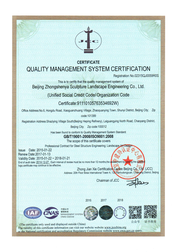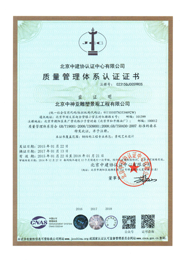 質量管理體系認證證書
