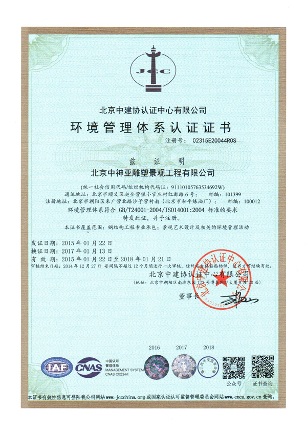 環境管理體系認證證書