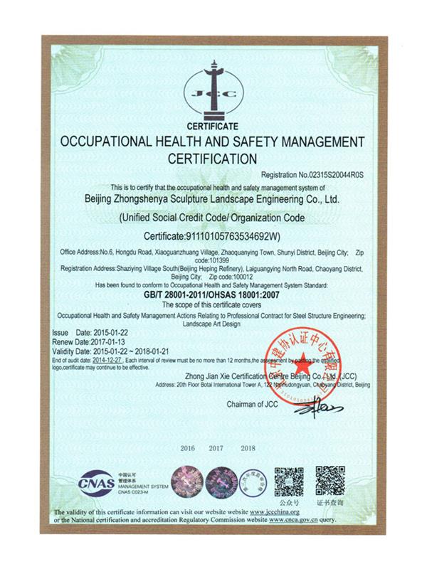 職業健康安全管理體系認證證書英文