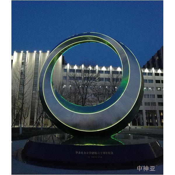 《華北電力大學雕塑》高8m 不銹鋼 設計:呂品昌、胡泉純 2018年 位于北京華北電力大學