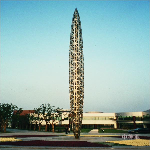 《公證柱》高21m 不銹鋼 設計:仲松 2001年 位于上海國家會計學院