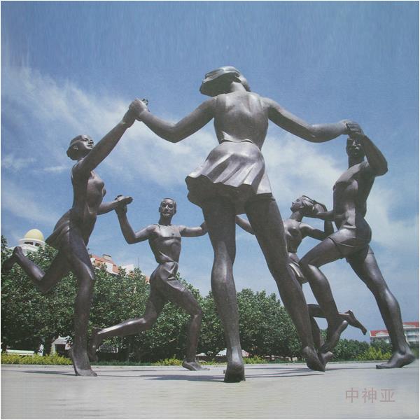 《嬉水少女》 高3m 不銹鋼 設計:徐侃 1984年 位于上海虹橋開發區中山西路和延安西路綠地,是國內第一座不銹鋼雕塑